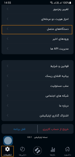 از قسمت تنظیمات گزینه دستگاههای متصل را انتخاب نمایید.