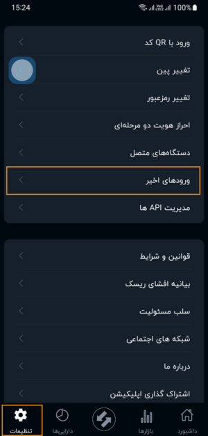 از قسمت تنظیمات گزینه ورودهای اخیر را انتخاب نمایید.
