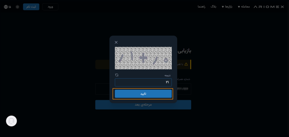 شماره تلفن همراه خود را وارد نمایید پس از تایید کپچا کد تایید ارسال شده را وارد نمایید.