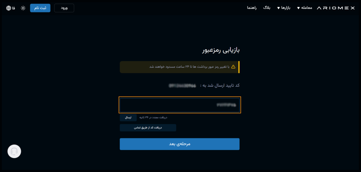 کد تایید ارسال شده به شماره همراه خود را وارد نمایید.