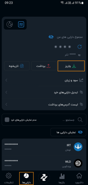 از قسمت داراییها، گزینه واریز را انتخاب نمایید.